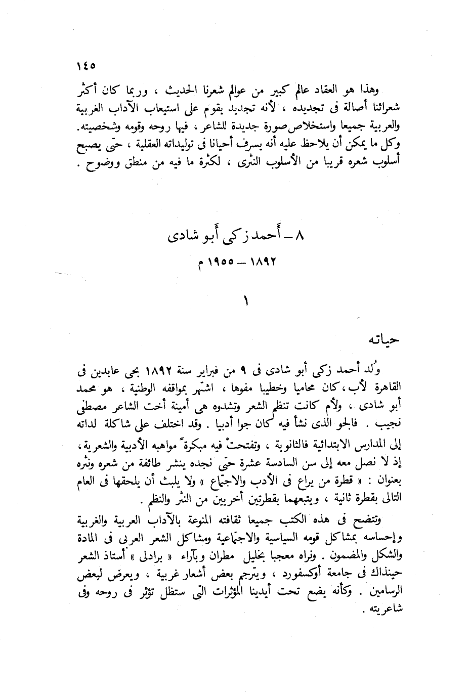ورأى في الغرب منزعًا نما بعد الحرب العالمية الأولى؛ إذ انصرف بعض الشعراء عن الحب والطبيعة والميثولوجيا القديمة إلى حياتهم الحاضرة، وحولوا كل ما فيها مما يُعد يوميًّا عاديًّا أو تافهًا إلى شعر لا يقل عن شعر الحب والطبيعة جمالًا وجلالًا. وفي داخل هذا الاتجاه أصدر ديوانه "عابر سبيل"، وفيه نراه يأخذ بعض الموضوعات اليومية ويفيض عليها من تأملاته العقلية والنفسية، على نحو ما نرى في قصيدته "كواء الثياب ليلة الأحد"، وهو يستهلها بقوله:
