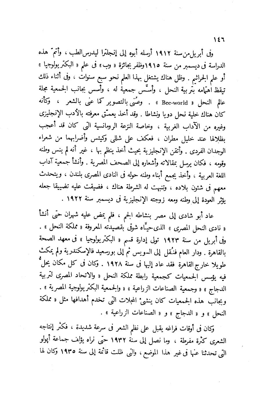 وهذا هو العقاد، عالم كبير من عوالم شعرنا الحديث، وربما كان أكثر شعرائنا أصالة في تجديده؛ لأنه تجديد يقوم على استيعاب الآداب الغربية والعربية جميعًا واستخلاص صورة جديدة للشاعر، فيها روحه وقومه وشخصيته. وكل ما يمكن أن يلاحظ عليه أنه يسرف أحيانًا في توليداته العقلية، حتى يصبح أسلوب شعره قريبًا من الأسلوب النثري؛ لكثرة ما فيه من منطق ووضوح.