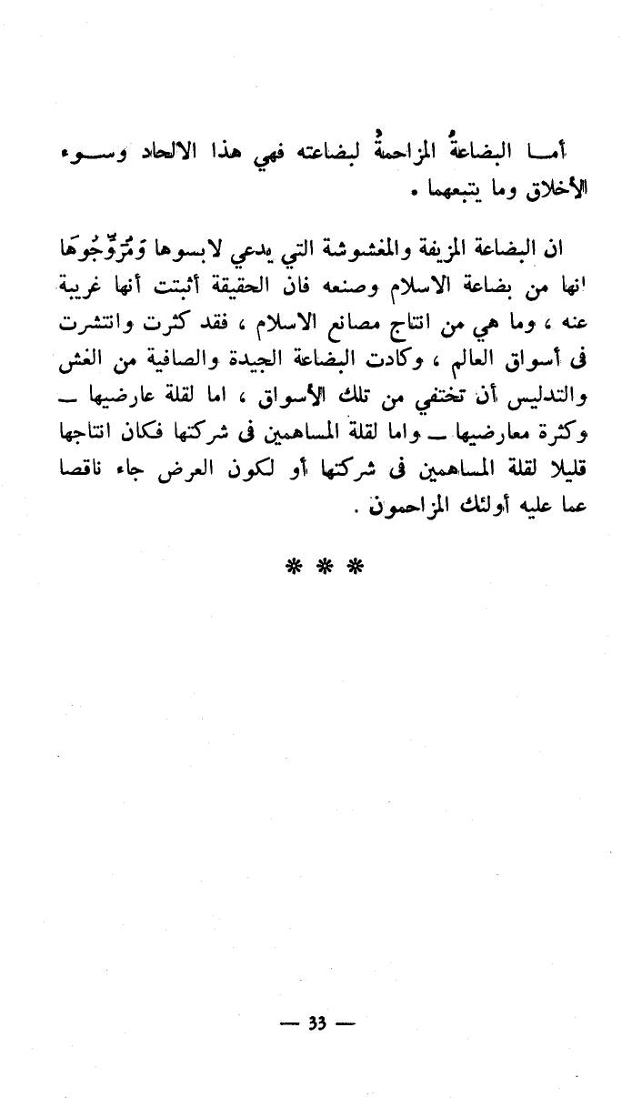 أما البضاعة المزاحمة لبضاعته فهي هذا الإلحاد وسوء الأخلاق وما يتبعهما.