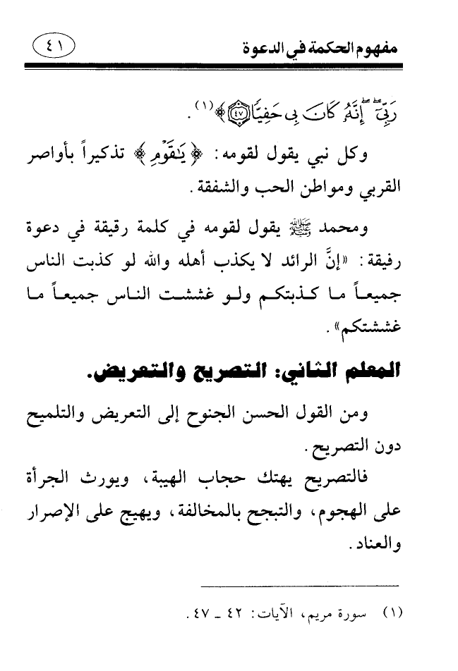 المعلم الثاني: التصريح والتعريض ومن القول الحسن الجنوح إلى التعريض والتلميح دون التصريح.