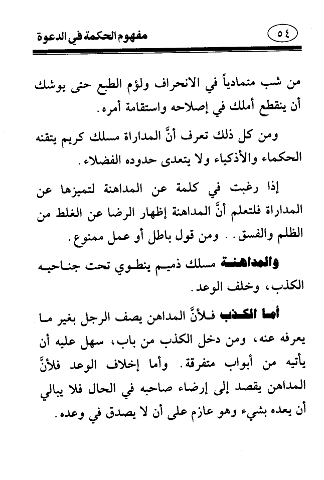 والمداهنة مسلك ذميم ينطوي تحت جناحيه الكذب، وخلف الوعد.