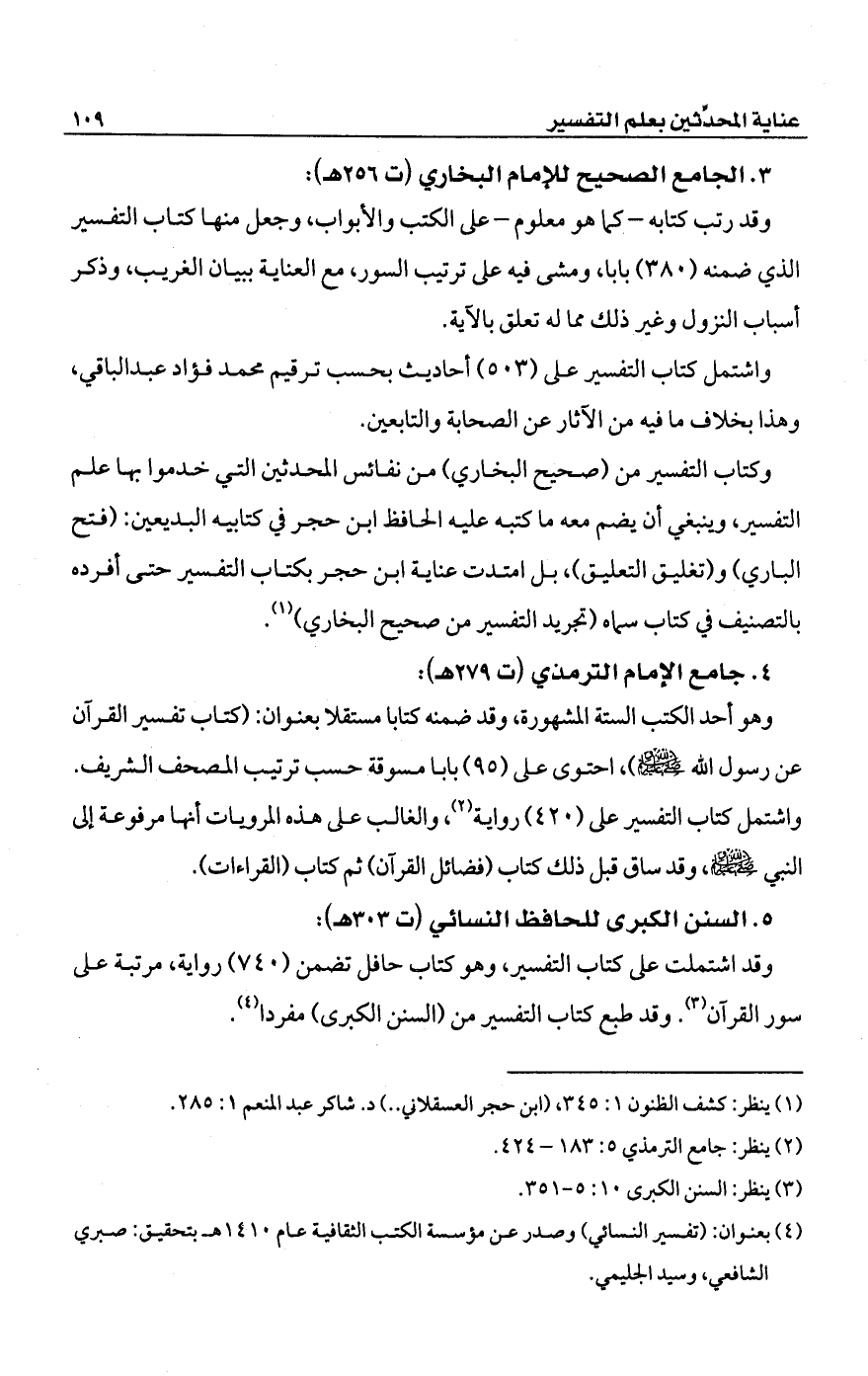 (¬4) بعنوان: (تفسير النسائي) وصدر عن مؤسسة الكتب الثقافية عام 1410 هـ بتحقيق: صبري الشافعي، وسيد الجليمي.