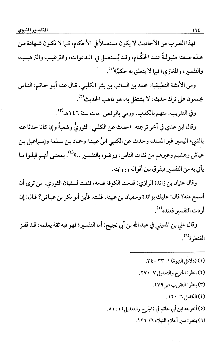 وقال ابن عدي في آخر ترجمته: "حدث عن الكلبي: الثوريُّ وشعبةُ وإن كانا حدثا عنه بالشيء اليسير غير المسند، وحدث عن الكلبي ابنُ عيينة وحماد بن سلمة وإسماعيل بن عياش وهشيم وغيرهم من ثقات الناس، ورضوه بالتفسير .. " (¬4). بمعنى أنهم قبلوا ما يأتي به من التفسير فيفرق بين أقواله وروايته.