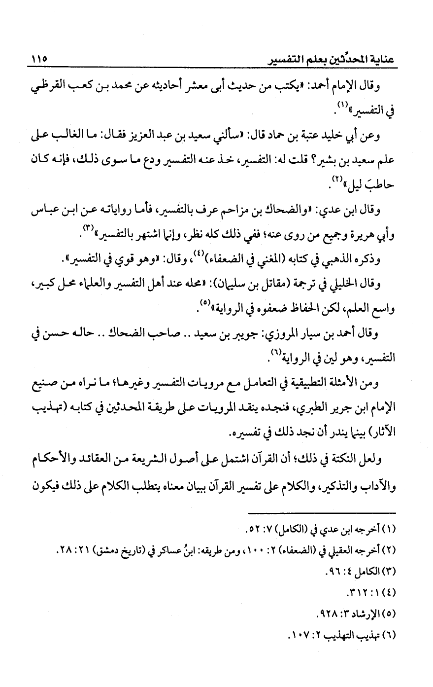 وقال ابن عدي: "والضحاك بن مزاحم عرف بالتفسير، فأما رواياته عن ابن عباس وأبي هريرة وجميع من روى عنه؛ ففي ذلك كله نظر، وإنما اشتهر بالتفسير" (¬3).