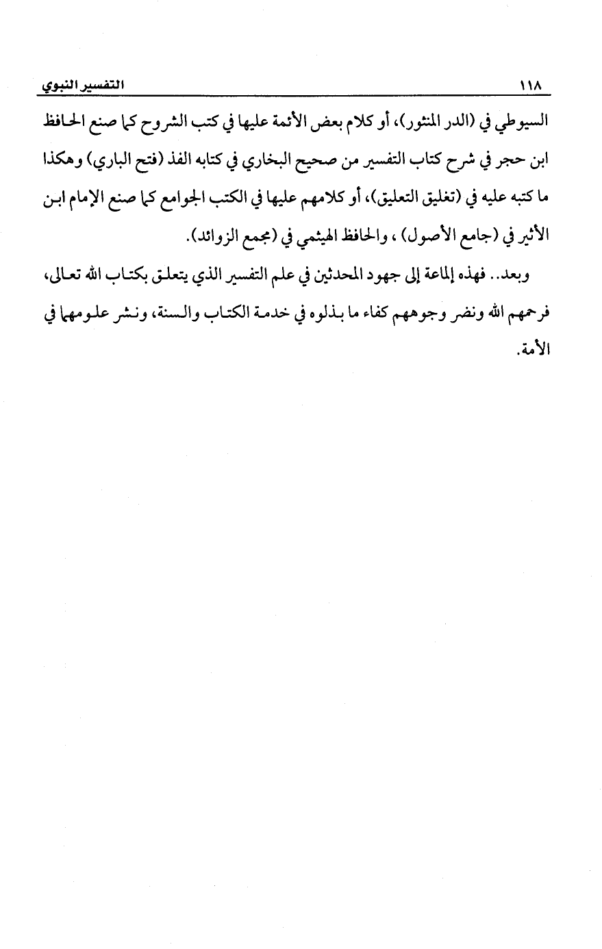 وبعد .. فهذه إلماعة إلى جهود المحدثين في علم التفسير الذي يتعلق بكتاب الله تعالى، فرحمهم الله ونضر وجوههم كفاء ما بذلوه في خدمة الكتاب والسنة، ونشر علومهما في الأمة.