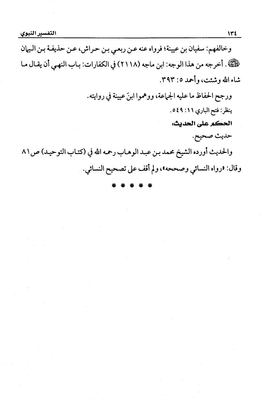 وخالفهم: سفيان بن عيينة؛ فرواه عنه عن ربعي بن حراش، عن حذيفة بن اليمان -رضي الله عنه-. أخرجه من هذا الوجه: ابن ماجه (2118) في الكفارات: باب النهي أن يقال ما شاء الله وشئت، وأحمد 5: 393.