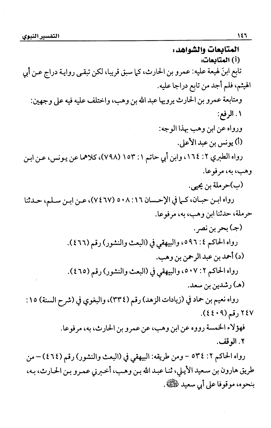 ومتابعة عمرو بن الحارث يرويها عبد الله بن وهب، واختلف عليه فيه على وجهين: