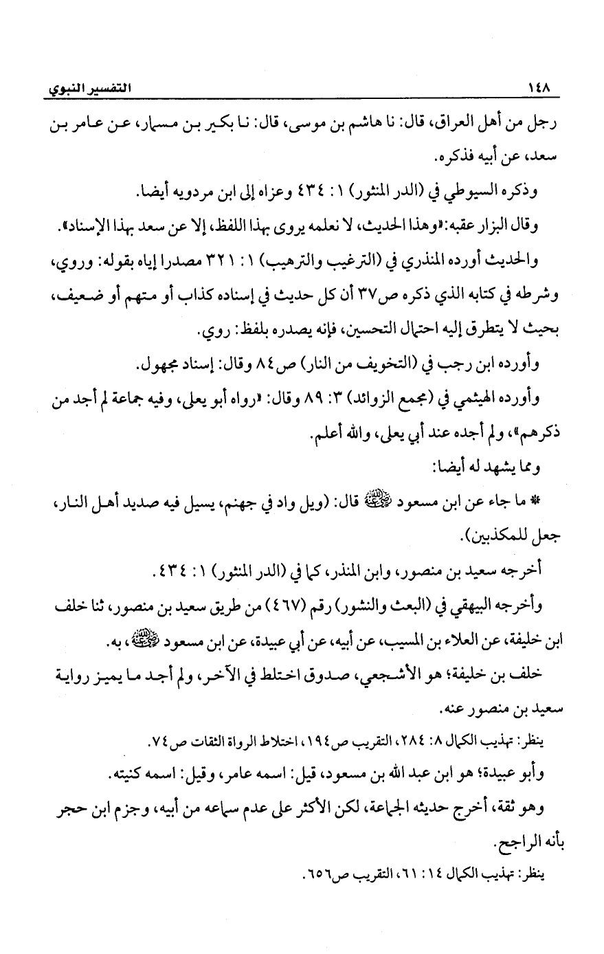 وأخرجه البيهقي في (البعث والنشور) رقم (467) من طريق سعيد بن منصور، ثنا خلاف ابن خليفة، عن العلاء بن المسيب، عن أبيه، عن أبي عبيدة، عن ابن مسعود -رضي الله عنه-، به.