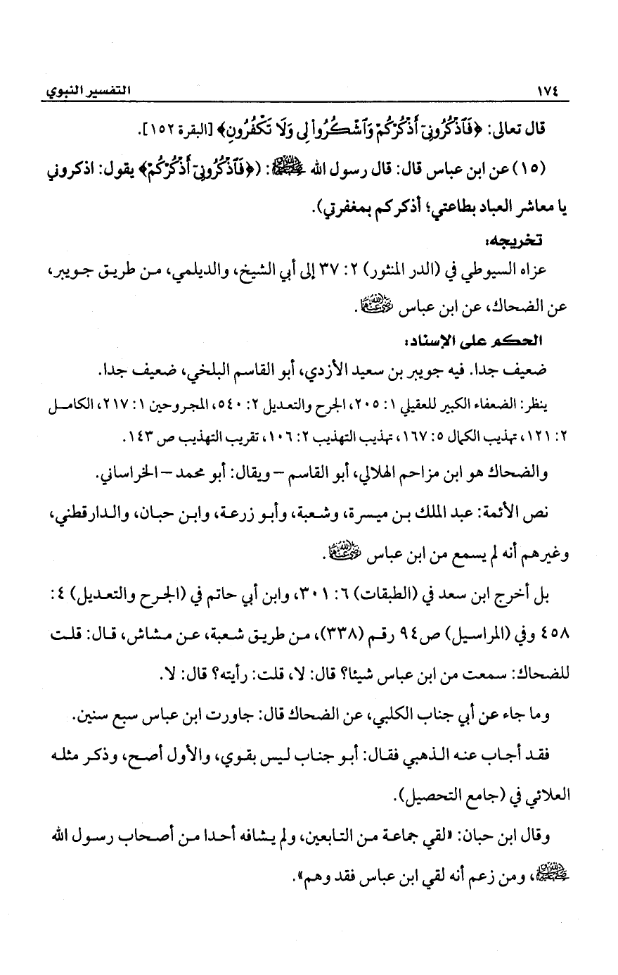 عزاه السيوطي في (الدر المنثور) 2: 37 إلى أبي الشيخ، والديلمي، من طريق جويبر، عن الضحاك، عن ابن عباس -رضي الله عنهما-.