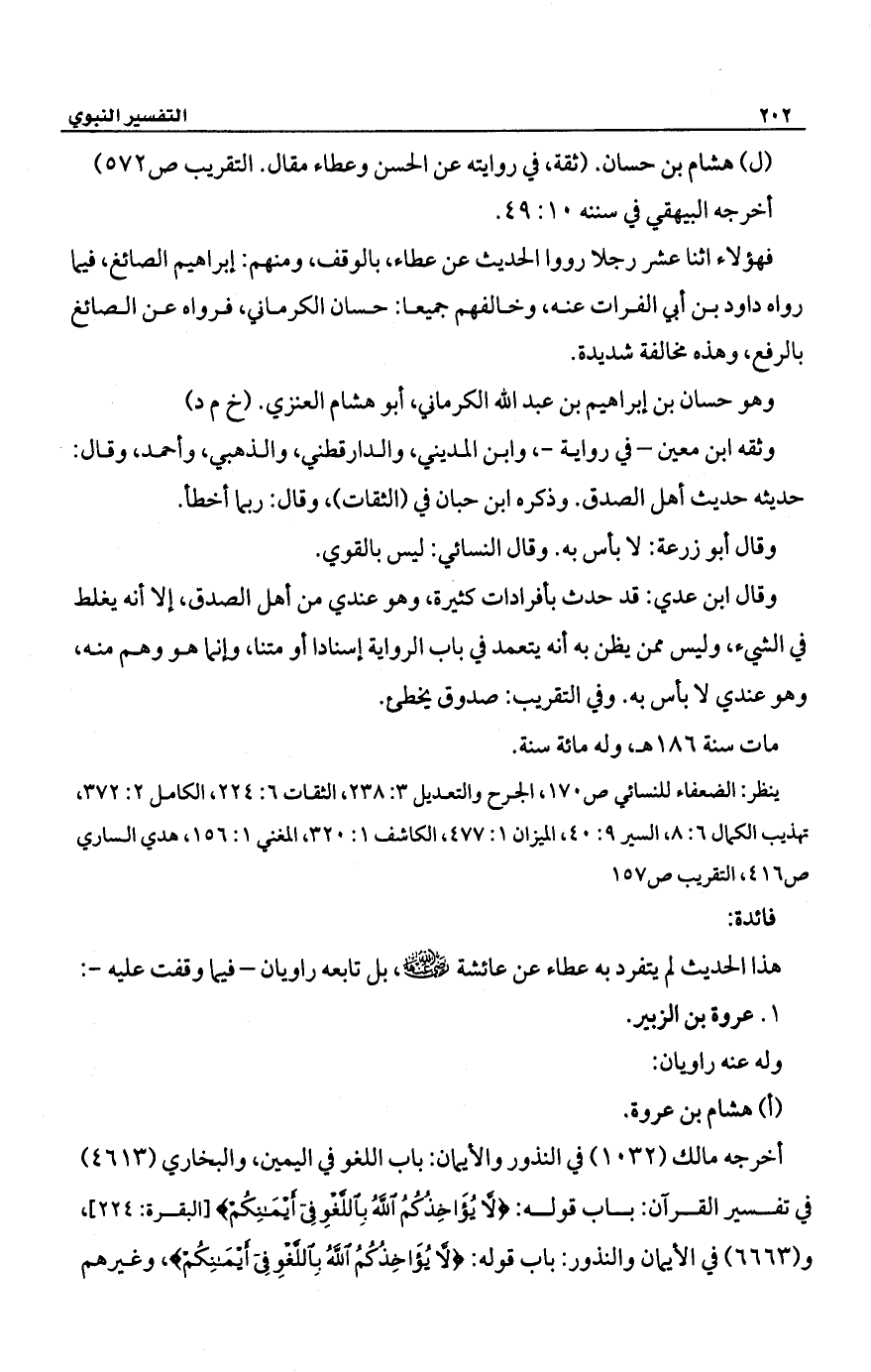 (ل) هشام بن حسان. (ثقة، في روايته عن الحسن وعطاء مقال. التقريب ص 572) أخرجه البيهقي في سننه 10: 49.