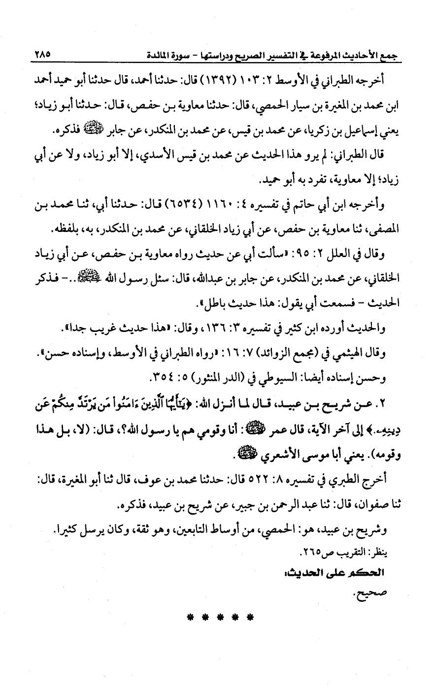 وأخرجه ابن أبي حاتم في تفسيره 4: 1160 (6534) قال: حدثنا أبي، ثنا محمد بن المصفى، ثنا معاوية بن حفص، عن أبي زياد الخلقاني، عن محمد بن المنكدر، به، بلفظه.