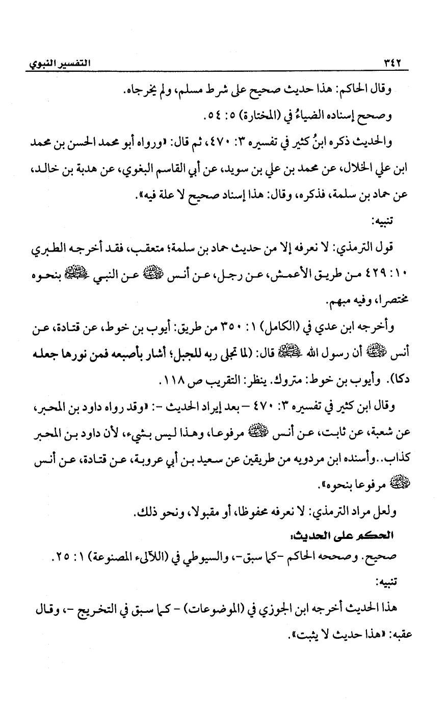 والحديث ذكره ابنُ كثير في تفسيره 3: 470، ثم قال: "ورواه أبو محمد الحسن بن محمد ابن علي الخلال، عن محمد بن علي بن سويد، عن أبي القاسم البغوي، عن هدبة بن خالد، عن حماد بن سلمة، فذكره، وقال: هذا إسناد صحيح لا علة فيه".