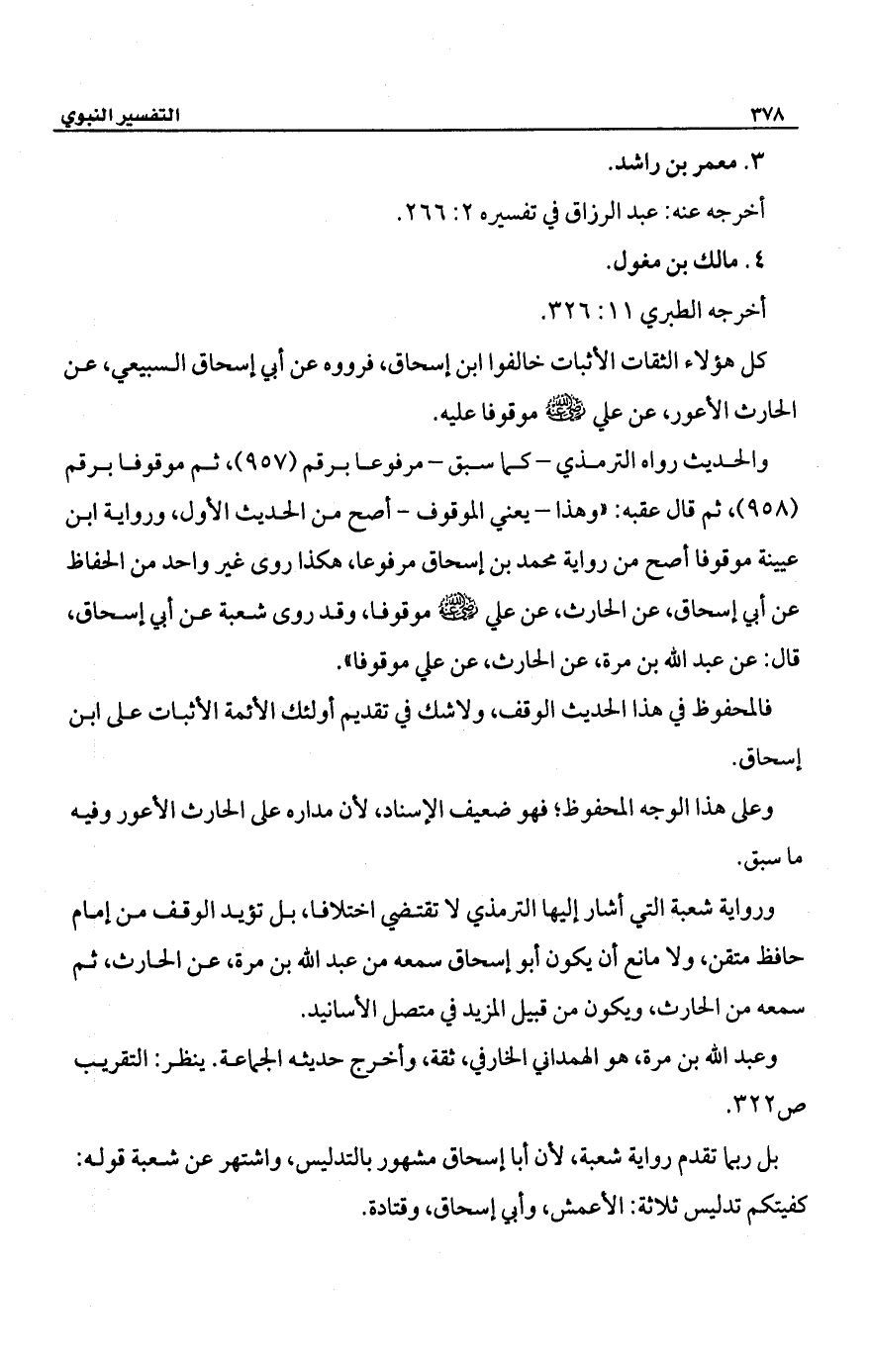 كل هؤلاء الثقات الأثبات خالفوا ابن إسحاق، فرووه عن أبي إسحاق السبيعي، عن الحارث الأعور، عن علي -رضي الله عنه- موقوفا عليه.