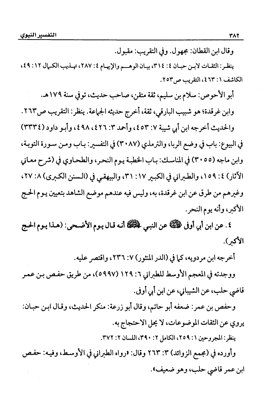 4 - عن ابن أبي أوفى -رضي الله عنه- عن النبي -صلى الله عليه وسلم- أنه قال يوم الأضحى: (هذا يوم الحج الأكبر).