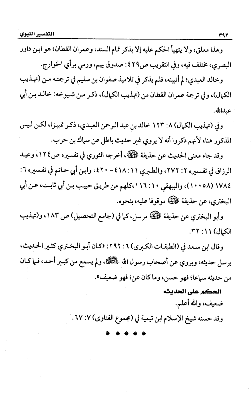 وقد جاء معنى الحديث عن حذيفة -رضي الله عنه-، أخرجه الثوري في تفسيره ص 124، وعبد الرزاق في تفسيىره 2: 272، والطبري 11: 418 - 420، وابن أبي حاتم في تفسيره 6: 1784 (10058)، والبيهقي 10: 116، كلهم من طريق حبيب بن أبي ثابت، عن أبي البختري، عن حذيفة -رضي الله عنه- موقوفا عليه، بنحوه.