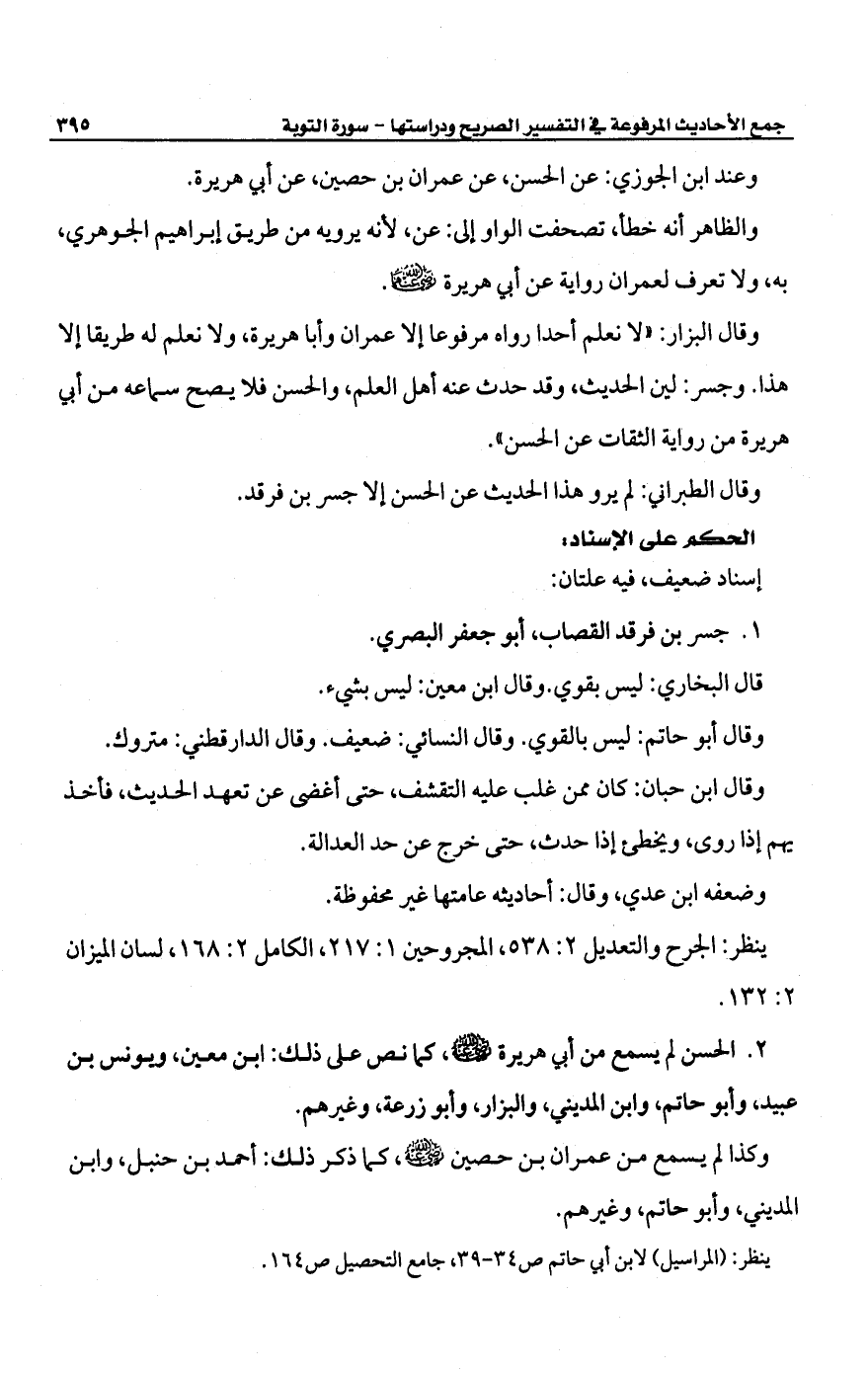 2 - الحسن لم يسمع من أبي هريرة -رضي الله عنه-، كما نص على ذلك: ابن معين، ويونس بن عبيد، وأبو حاتم، وابن المديني، والبزار، وأبو زرعة، وغيرهم.