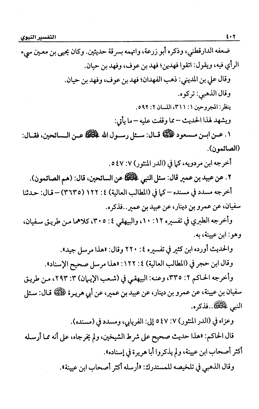 وعزاه في (الدر المنثور) 7: 547 إلى: الفريابي، ومسدد في (مسنده).