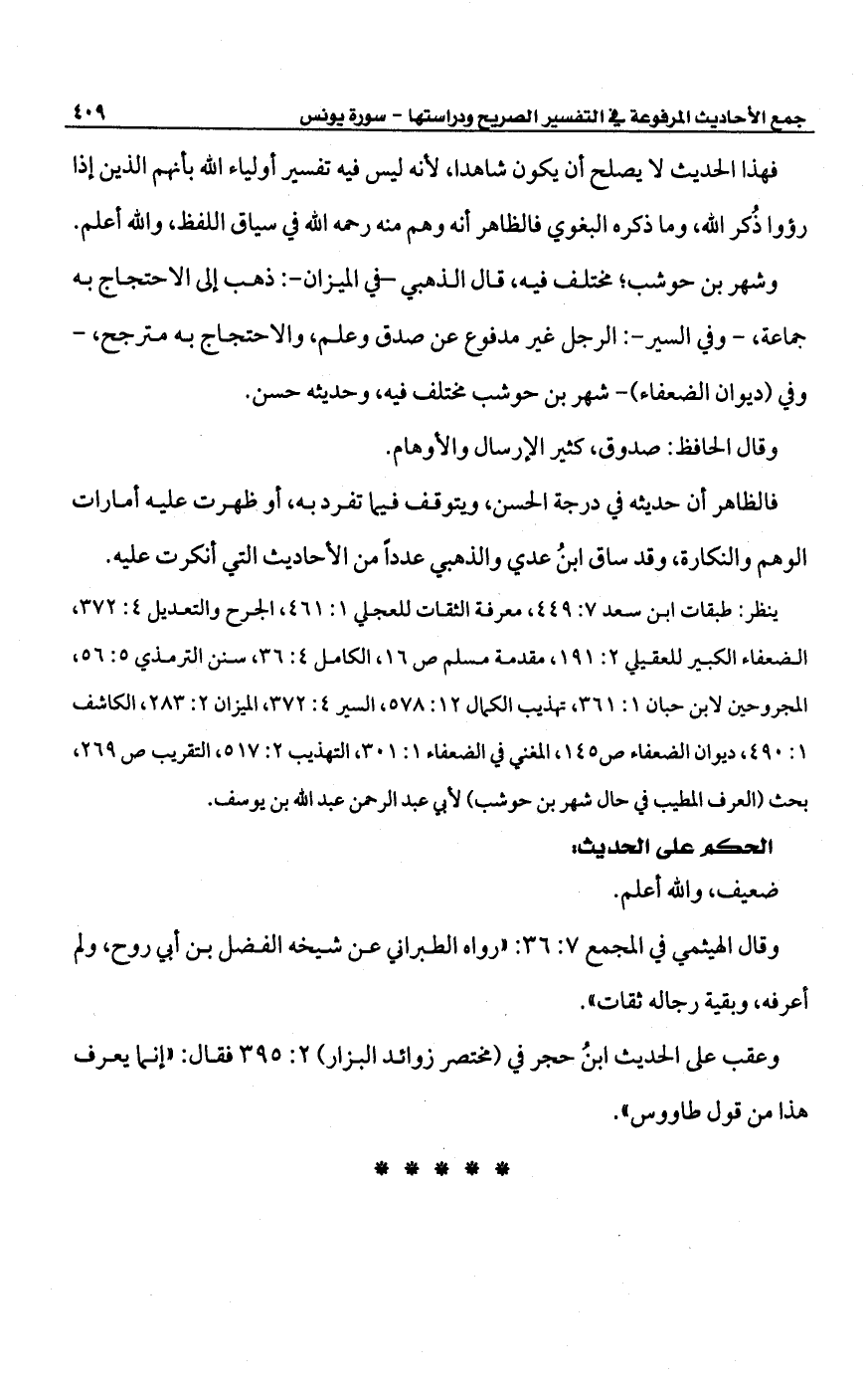 وشهر بن حوشب؛ مختلف فيه، قال الذهبي -في الميزان-: ذهب إلى الاحتجاج به جماعة، -وفي السير-: الرجل غير مدفوع عن صدق وعلم، والاحتجاج به مترجح، -وفي (ديوان الضعفاء) - شهر بن حوشب مختلف فيه, وحديثه حسن.