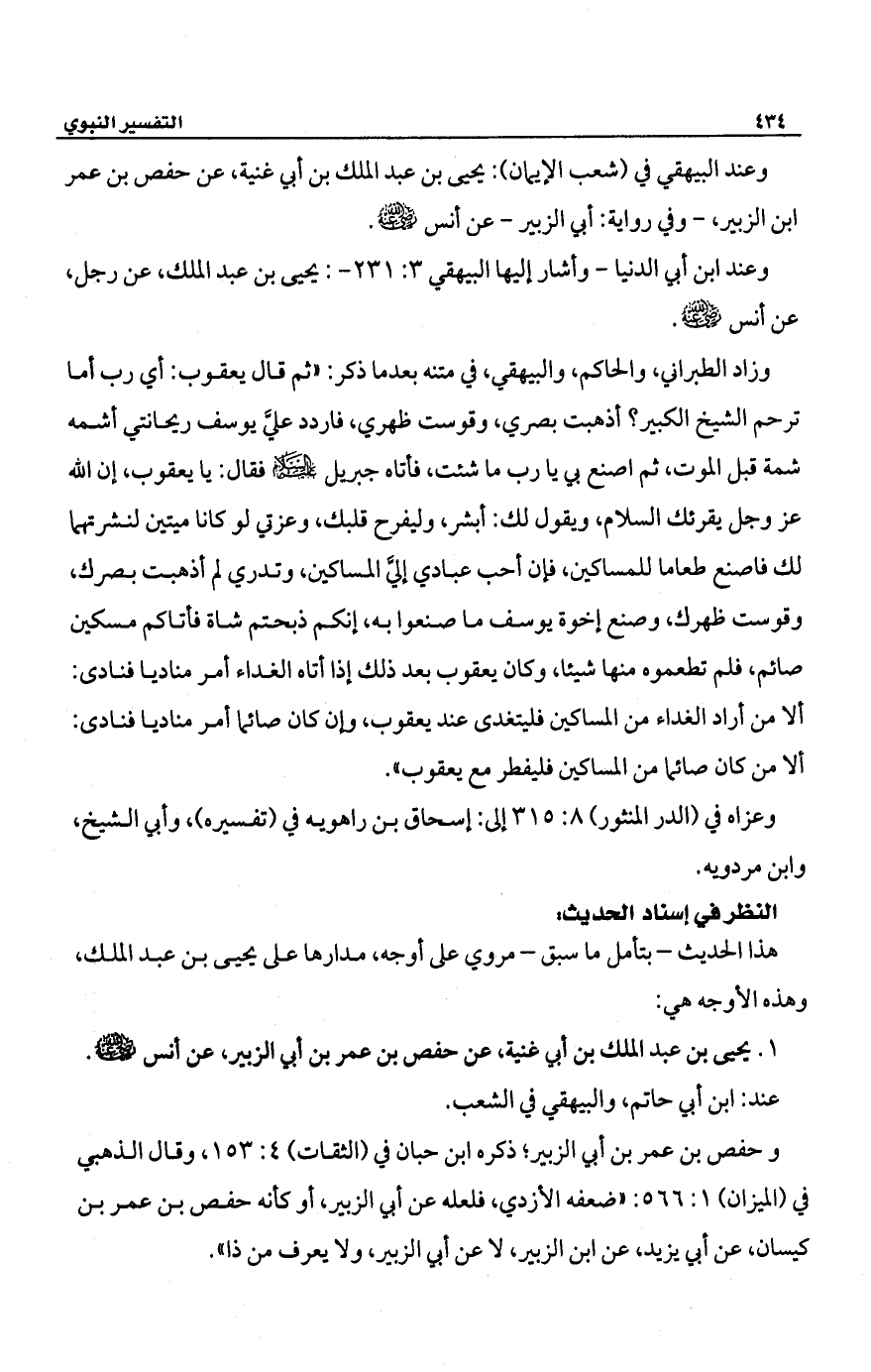 1 - يحيى بن عبد الملك بن أبي غنية، عن حفص بن عمر بن أبي الزبير، عن أنس -رضي الله عنه-. عند: ابن أبي حاتم، والبيهقي في الشعب.