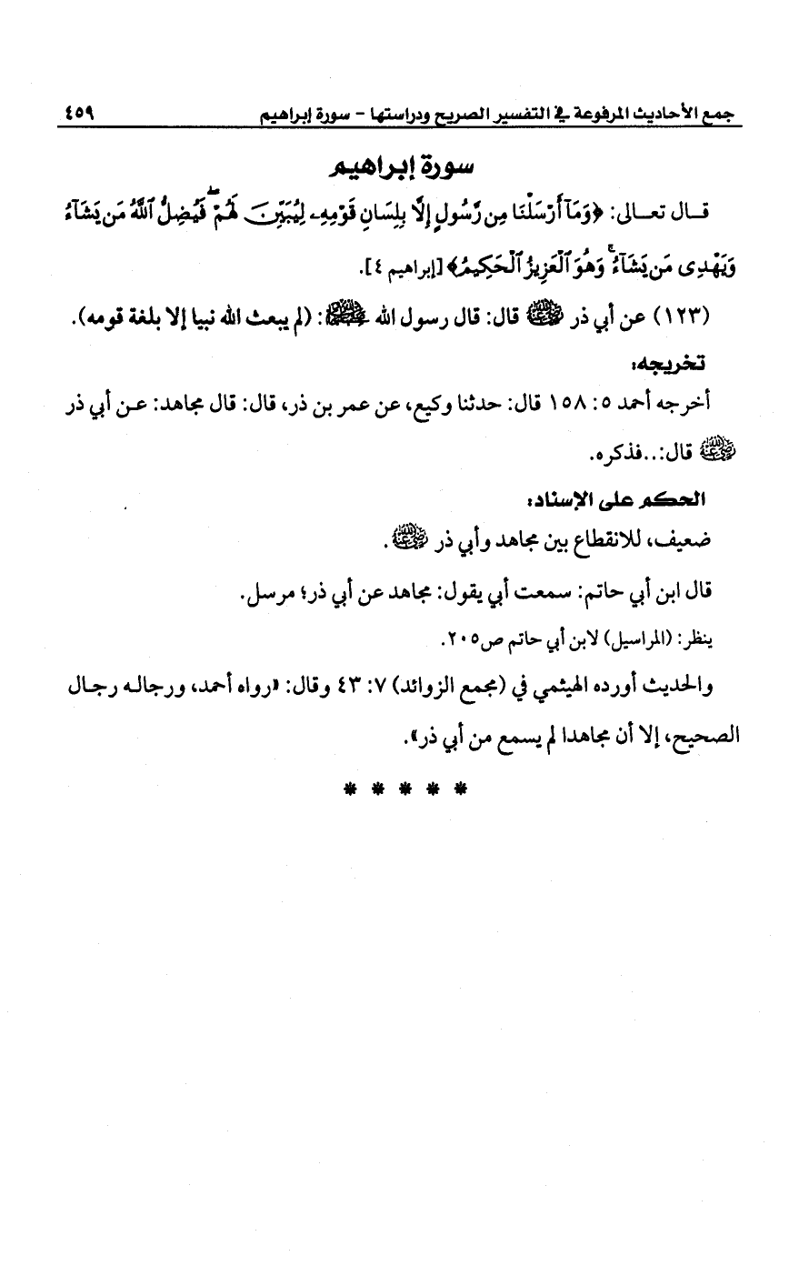 أخرجه أحمد 5: 158 قال: حدثنا وكيع، عن عمر بن ذر، قال: قال مجاهد: عن أبي ذر -رضي الله عنه- قال: .. فذكره.