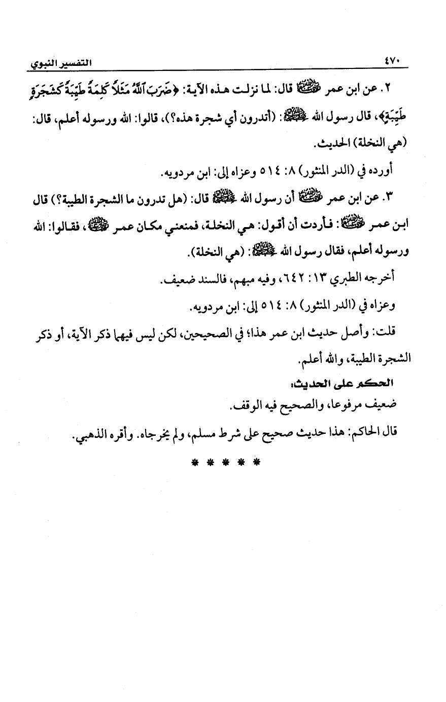 قلت: وأصل حديث ابن عمر هذا؛ في الصحيحين، لكن ليس فيهما ذكر الآية، أو ذكر الشجرة الطيبة، والله أعلم.
