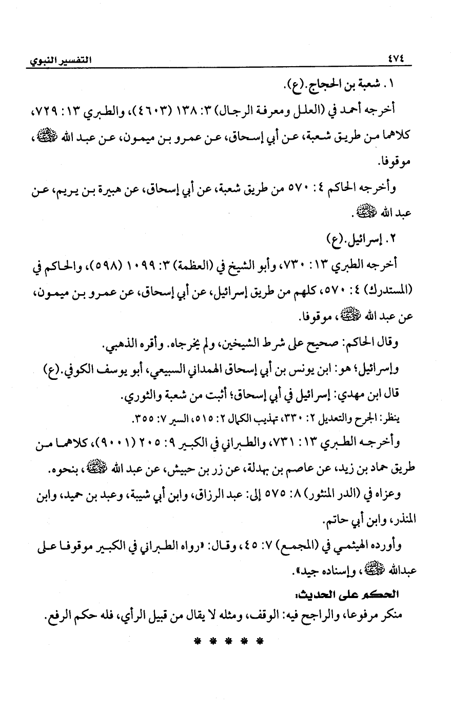 أخرجه أحمد في (العلل ومعرفة الرجال) 3: 138 (4603)، والطبري 13: 729، كلاهما من طريق شعبة، عن أبي إسحاق، عن عمرو بن ميمون، عن عبد الله -رضي الله عنه-، موقوفا.