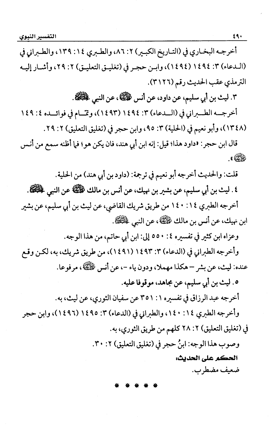 3 - ليث بن أبي سليم، عن داود، عن أنس -رضي الله عنه-، عن النبي -صلى الله عليه وسلم-.