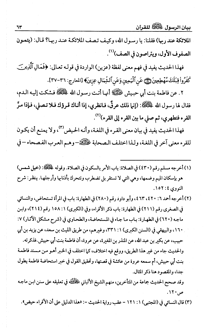 فهذا الحديث يفيد في بيان معنى القرء في اللغة، وأنه الحيض (¬3)، ولا يمنع أن يكون للقرء معنى آخر في اللغة، ولذا اختلف الصحابة -رضي الله عنهم- وهم العرب الفصحاء- في