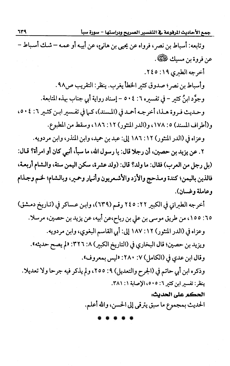 وحديث فروة هذا، أخرجه أحمد في (المسند)، كما في تفسير ابن كثير 6: 504، و (أطراف المسند) 5: 178، و (الدر المنثور) 12: 186، وسقط من المطبوع.