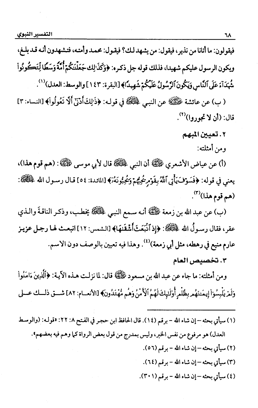 (¬1) سيأتي بحثه -إن شاء الله- برقم (14). قال الحافظ ابن حجر في الفتح 8: 22: "قوله: (والوسط العدل) هو مرفوع من نفس الخبر، وليس بمدرج من قول بعض الرواة كما وهم فيه بعضهم".