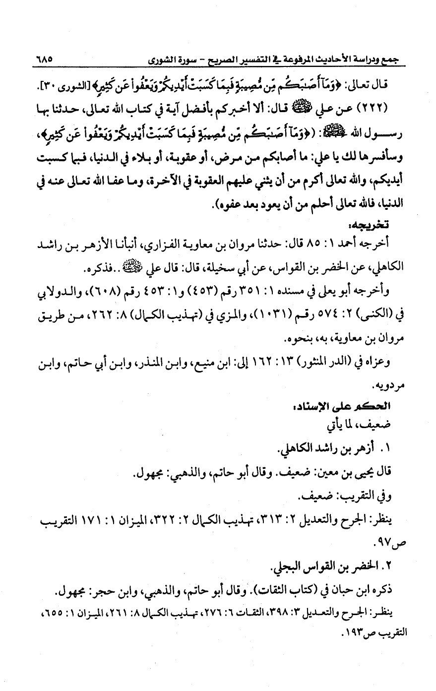 وعزاه في (الدر المنثور) 13: 162 إلى: ابن منيع، وابن المنذر، وابن أبي حاتم، وابن مردويه.