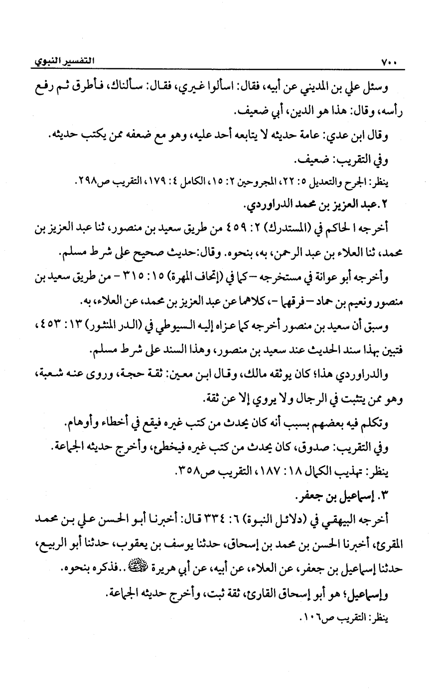 والدراوردي هذا؛ كان يوثقه مالك، وقال ابن معين: ثقة حجة، وروى عنه شعبة، وهو ممن يتثبت في الرجال ولا يروي إلا عن ثقة.
