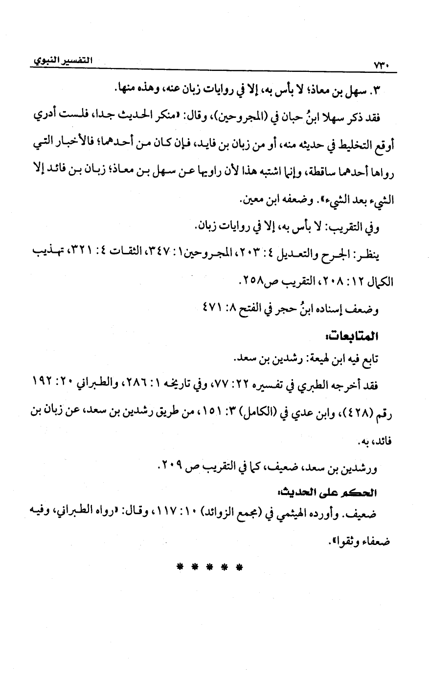 فقد أخرجه الطبري في تفسيره 22: 77، وفي تاريخه 1: 286، والطبراني 20: 192 رقم (428)، وابن عدي في (الكامل) 3: 151، من طريق رشدين بن سعد، عن زبان بن فائد، به.
