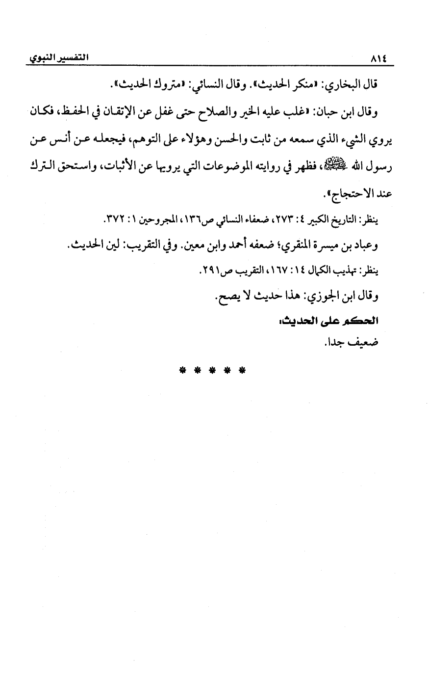 ينظر: التاريخ الكبير 4: 273، ضعفاء النسائي ص 136، المجروحين 1: 372.