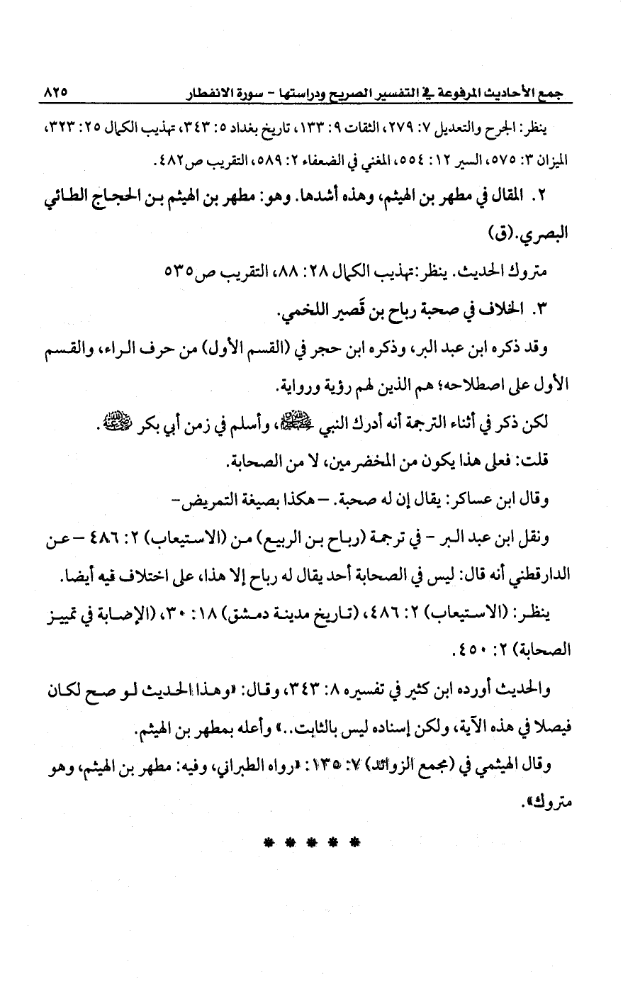 2 - المقال في مطهر بن الهيثم، وهذه أشدها. وهو: مطهر بن الهيثم بن الحجاج الطائي البصري. (ق)