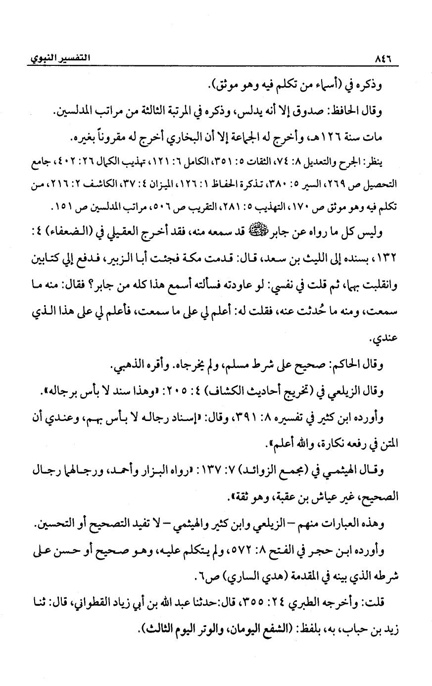 وقال الزيلعي في (تخريج أحاديث الكشاف) 4: 205: "وهذا سند لا بأس برجاله".
