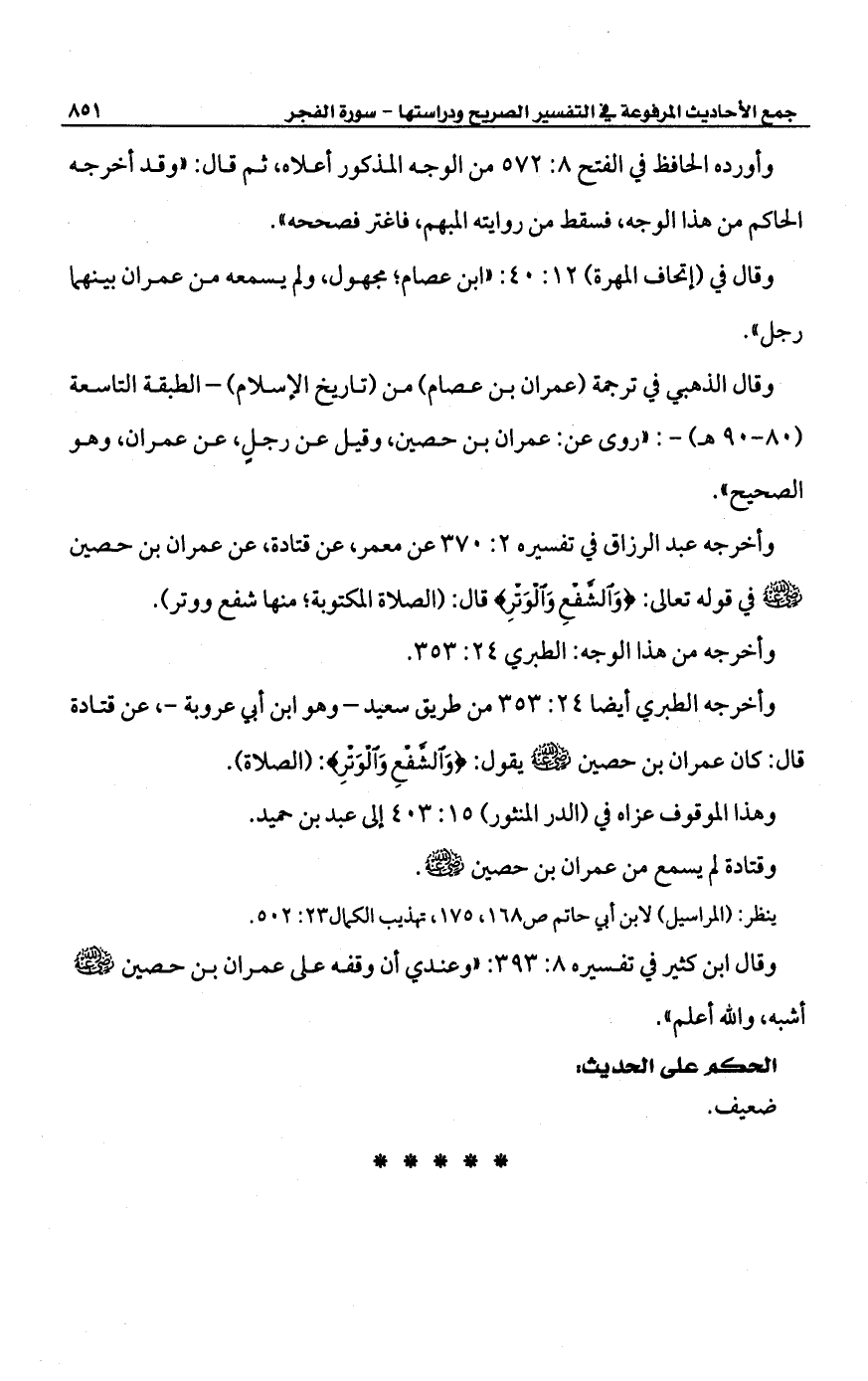 قال ابن كثير في تفسيره 8: 393: "وعندي أن وقفه على عمران بن حصين -رضي الله عنه- أشبه، والله أعلم".