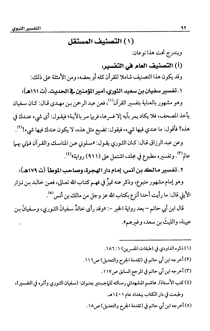 (¬4) كتب الأستاذ/ هاشم المشهداني رسالته للماجستير بعنوان: (سفيان الثوري وأثره في التفسير)، وطبعت في دار الكتاب ببغداد عام 1401 هـ.
