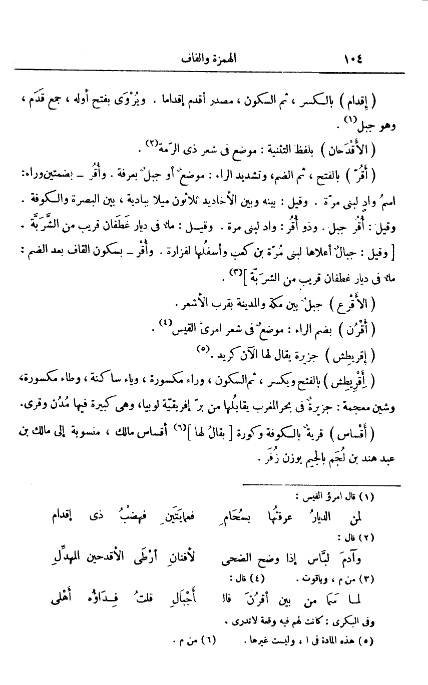 [وقيل: جبال أعلاها لبنى مرّة بن كعب وأسفلها لفزارة. وأقر- بسكون القاف بعد الضم: