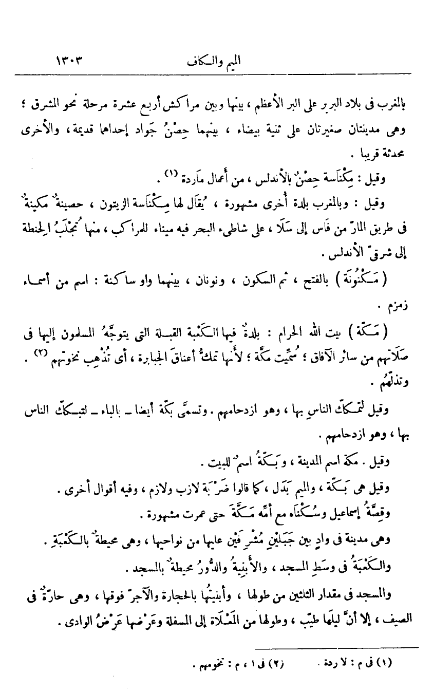 وقيل: وبالمغرب بلدة أخرى مشهورة، يقال لها مكناسة الزيتون، حصينة مكينة فى طريق المارّ من فاس إلى سلا، على شاطىء البحر فيه ميناء للمراكب، منها تجلب الحنطة إلى شرقىّ الأندلس.