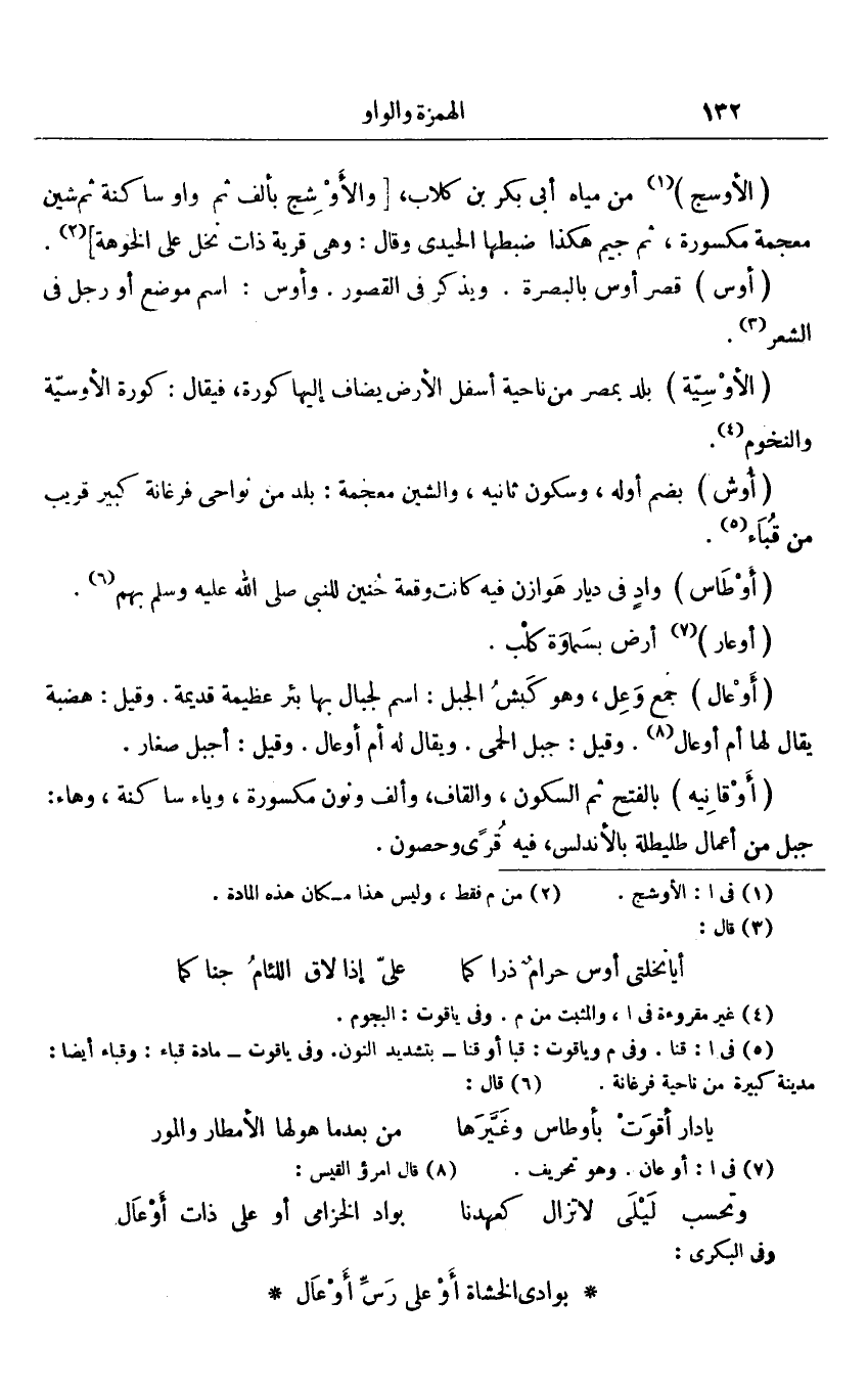 «1» من مياه أبى بكر بن كلاب، [والأوشج بألف ثم واو ساكنة ثم شين معجمة مكسورة، ثم جيم هكذا ضبطها الحيدى وقال: وهى قرية ذات نخل على الخوهة] «2» .