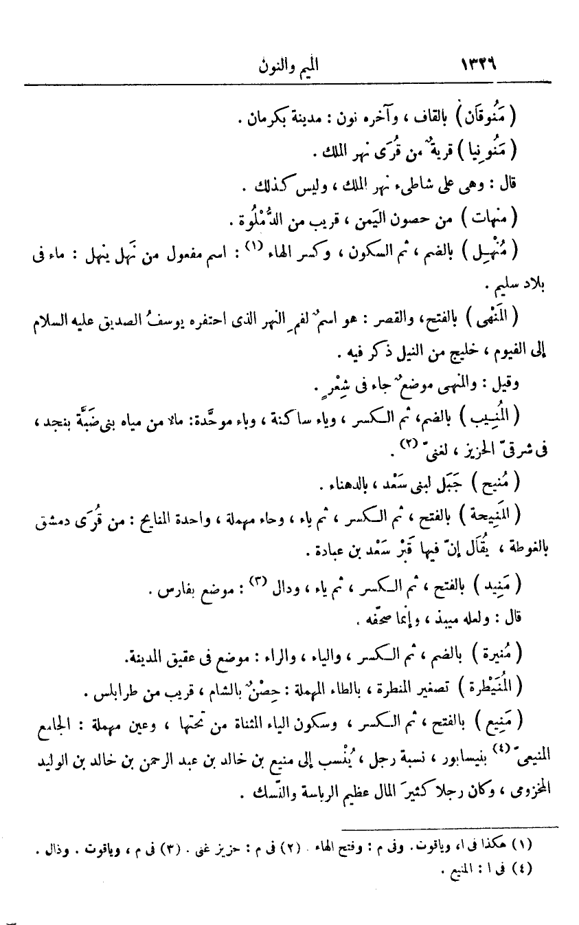 بالفتح، ثم الكسر، وسكون الياء المثناة من تحتها، وعين مهملة: الجامع المنيعى «4» بنيسابور، نسبة رجل، ينسب إلى منيع بن خالد بن عبد الرحمن بن خالد بن الوليد المخزومى، وكان رجلا كثير المال عظيم الرياسة والنّسك.