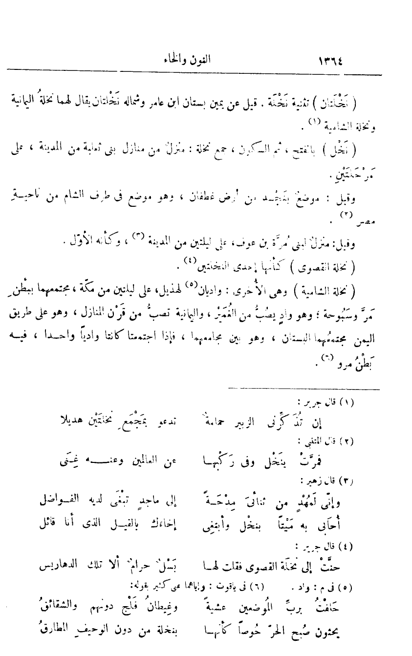 تثنية نخلة. قيل عن يمين بستان ابن عامر وشماله نخلتان يقال لهما نخلة اليمانية ونخلة الشامية «1» .