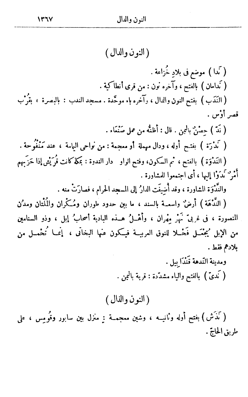 بفتح النون والدال، وآخره باء موحّدة. مسجد الندب: بالبصرة، بقرب قصر أوس.