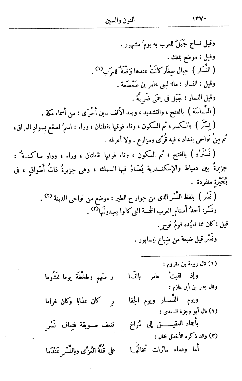 وقيل نساح جبل للعرب به يوم مشهور.