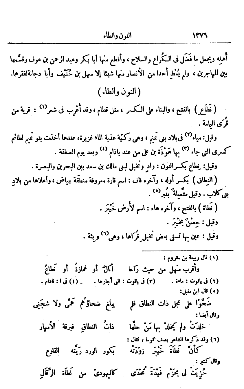 وقيل: نطاع بكسر النون: واد ونخيل لبنى مالك بن سعد بين البحرين والبصرة.