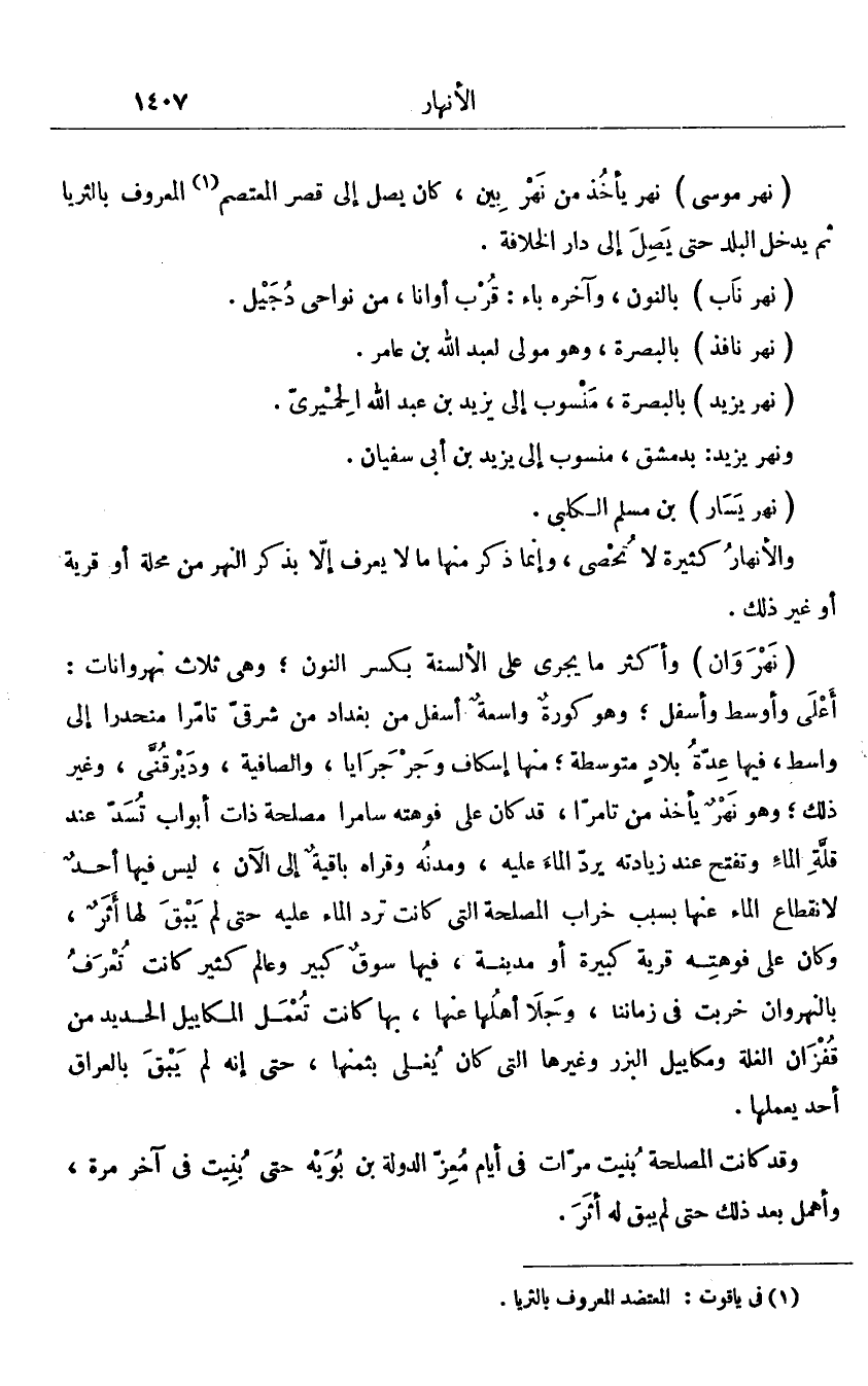 والأنهار كثيرة لا تحصى، وإنما ذكر منها ما لا يعرف إلّا بذكر النهر من محلة أو قرية أو غير ذلك.
