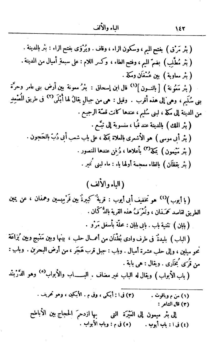 بليدة فى طرف وادى بطنان من أعمال حلب، بينها وبين منبج وبين بزاعة نحو ميلين، وإلى حلب عشرة أميال. وباب: جبل قرب هجر، من أرض البحرين. وباب: