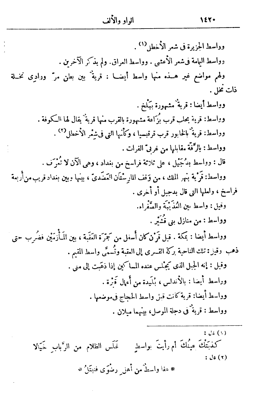 وواسط اليمامة فى شعر الأعشى. وواسط العراق. ولم يذكر الآخرين.