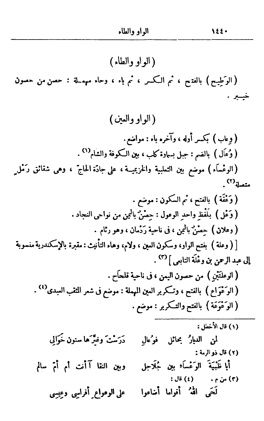 بلفظ واحد الوعول: حصن باليمن من نواحى النجاد.